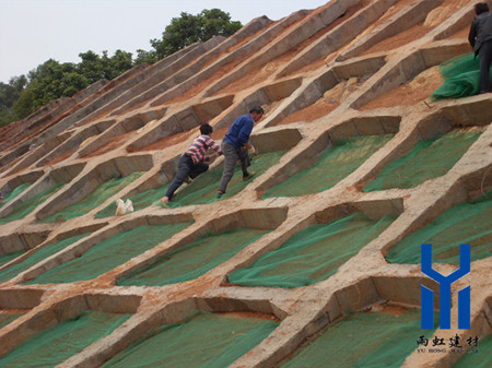 施工前準(zhǔn)備,如工具、人員配備、覆蓋充填物、草種等;對(duì)邊坡進(jìn)行修整,使之盡可能的平整; 在坡頂開挖暗溝,尺寸為寬1米,深1米; 貼著地面由上至下將三維網(wǎng)卷材展開,卷材頂端固定于暗溝內(nèi),相鄰兩卷材料相互搭接,并要求搭接寬度不小于10厘米,并用軟鐵制成的U型地釘進(jìn)行固定,鋪設(shè)時(shí)網(wǎng)狀面朝上,多余卷材用剪刀裁剪;田野風(fēng)介紹播灑草種,可選用百慕大草或百喜草,草種用量為12克/平方米;人工回填細(xì)砂質(zhì)營(yíng)養(yǎng)土,厚度不***過(guò)三維網(wǎng)的一半高度,再灑草種,回填土至剛好填滿,然后輕微壓實(shí)、整平; 如氣候較干燥,水分散失較快,可采用草袋或無(wú)紡布覆蓋,澆水養(yǎng)護(hù); 在植被發(fā)育期間,每天澆水兩次,養(yǎng)護(hù)期約十天; 當(dāng)植被生長(zhǎng)成型,根系已穿過(guò)三維網(wǎng),即可撤去上覆的草袋或無(wú)紡布。 維植被網(wǎng)護(hù)坡滿足了路基邊坡坡面的保護(hù)和加固的要求,保證了路基不致因雨水沖刷和氣候變化而破壞,而且兼顧了道路景觀和環(huán)境協(xié)調(diào)。已引起了大家的關(guān)注,在實(shí)際工程中已大量采用,具有廣闊的發(fā)展前景。